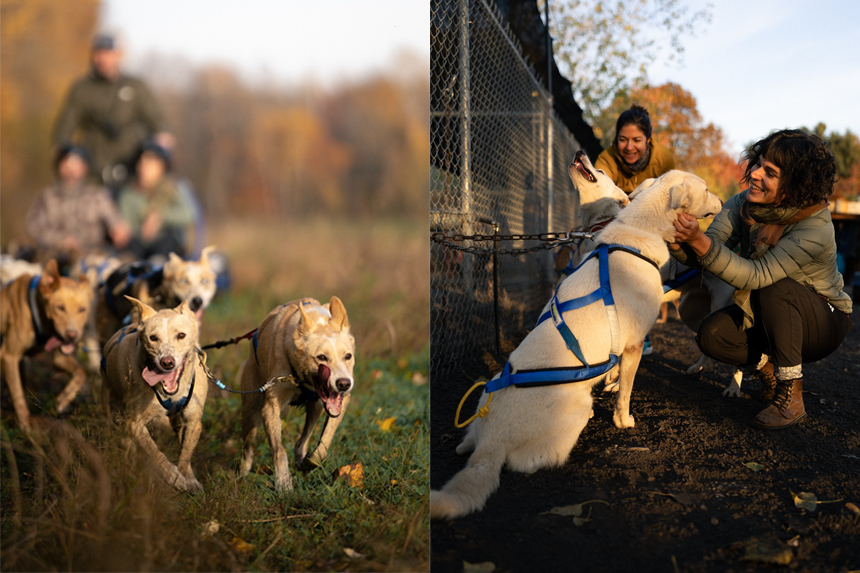 Du traineau à chiens sans neige, mais en automne dans Lanaudière