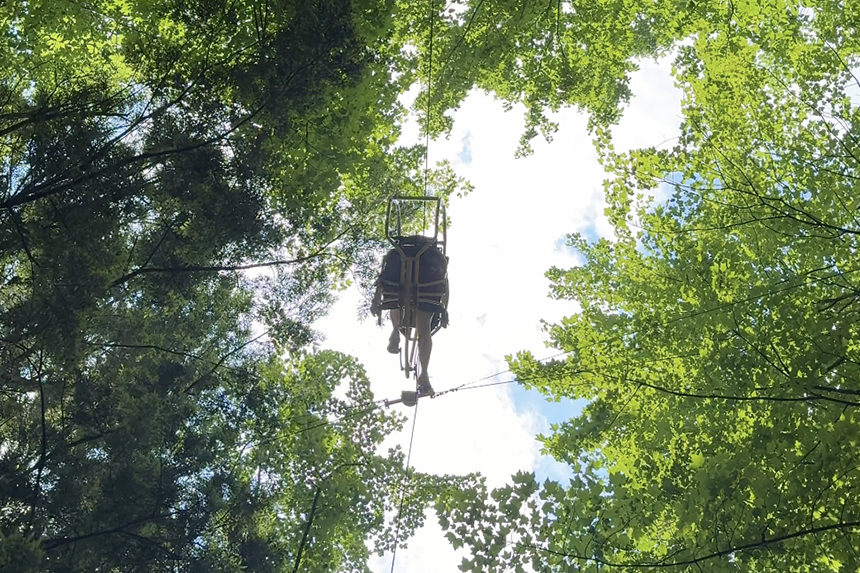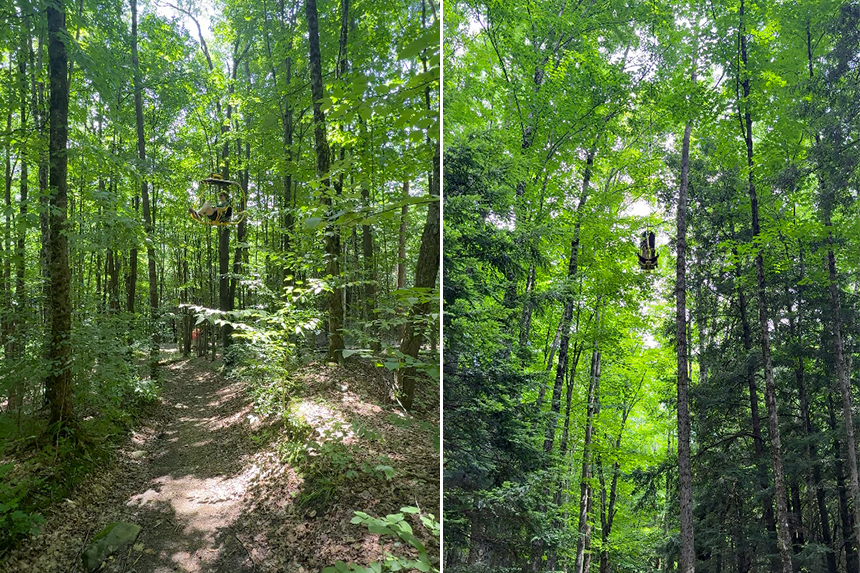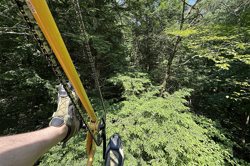 Pédaler au sommet des arbres: on a testé le VéloVolant en Estrie