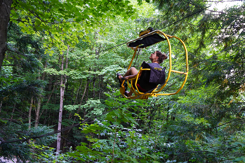 Dans les Cantons-de-l’est, à Sutton, le Diable Vert propose une expérience qui sort de l’ordinaire : le VéloVolant.
