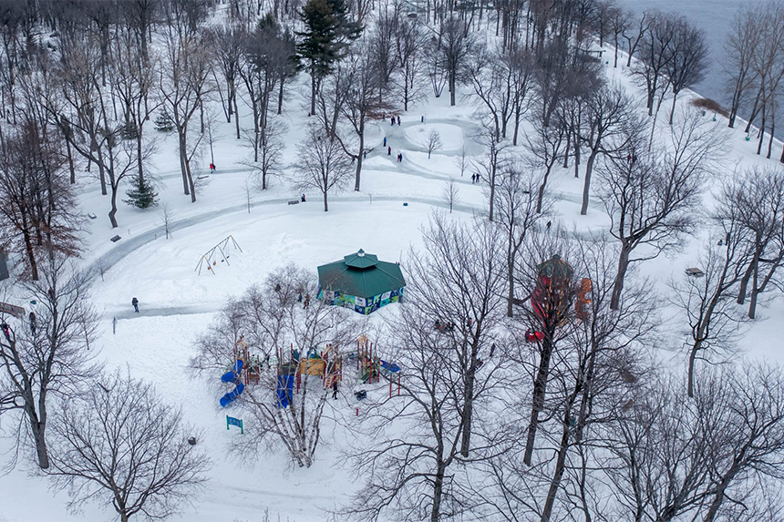 Tout près du centre de Trois-Rivières. ce parc urbain propose notamment dans son offre hivernale gratuite un sentier de patin de 1,7 km, tout en admirant le Saint-Laurent. 500 m sont également illuminés pour prolonger le plaisir de patiner en soirée.