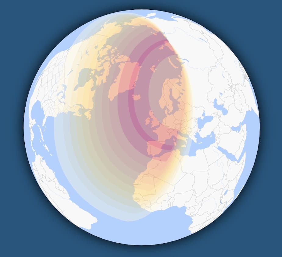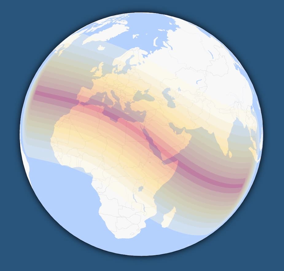 Cette éclipse sera visible dans le nord de l’Afrique, dont la majorité des pays du Maghreb (Algérie, Tunisie, Libye), et au Moyen-Orient. L’Afrique centrale, l’Europe et l’Asie auront droit au phénomène partiel.