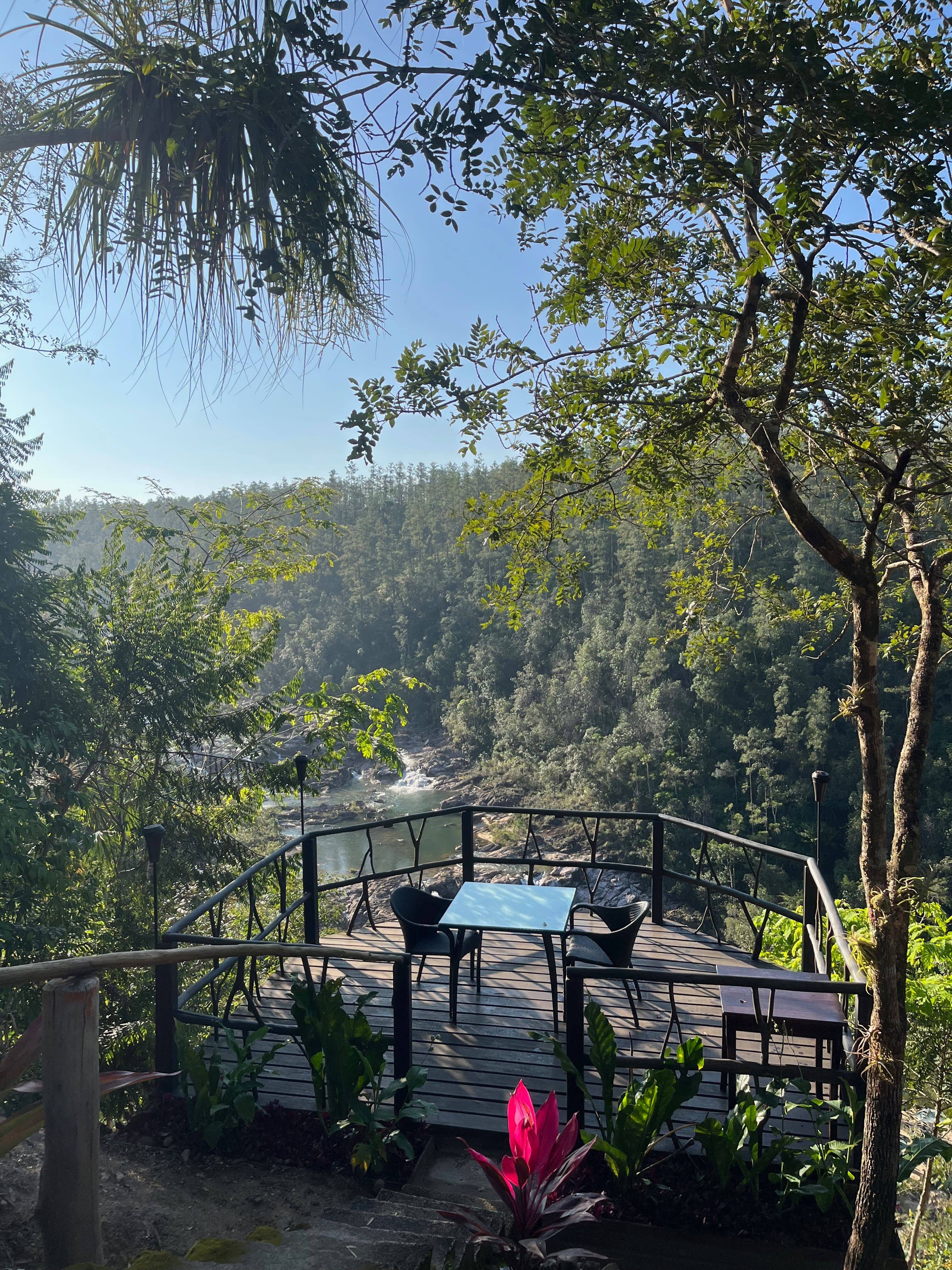 Et tout dans ce lieu est pensé pour qu’on passe en mode zen. L’immense terrain qui fait face à la rivière accueille un bâtiment principal, qui abrite la réception, un petit espace-boutique, un bar, un restaurant et une grande terrasse avec vue sur les chutes. Inutile de dire que c’est l’endroit rêvé pour assister au coucher du soleil!