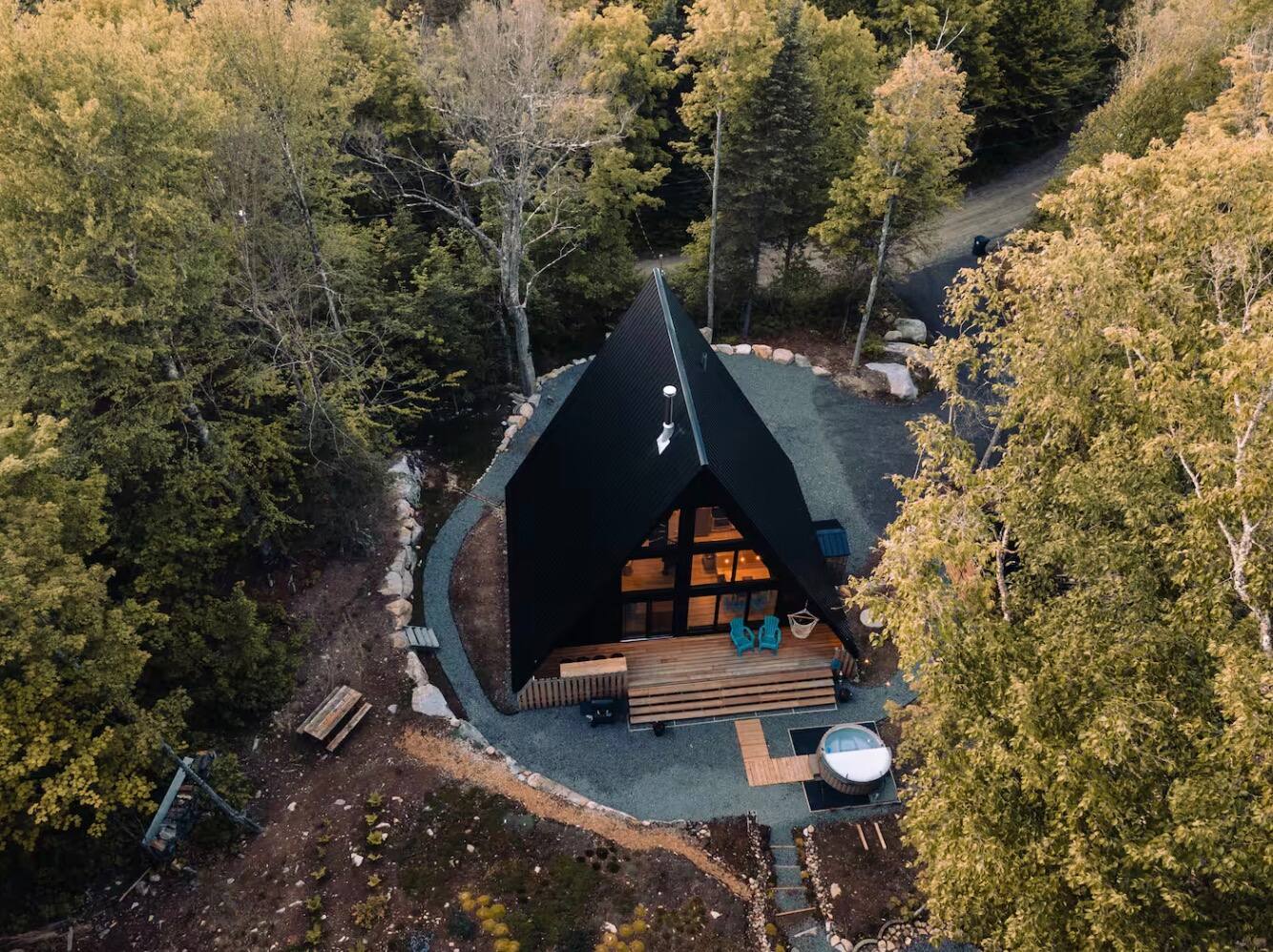 « Aux abords d'un lac, le Parc de la Gatineau est un superbe chalet en A parfait pour se déconnecter de la ville tout en étant idéalement situé pour vous permettre de bien profiter de tout ce que la région touristique de Gatineau/Ottawa a à offrir. Ces mini-chalets sont équipés pour vous permettre de relaxer avec nos spa ou d'effectuer du télétravail dans leur bureau aménagé à cet effet. »