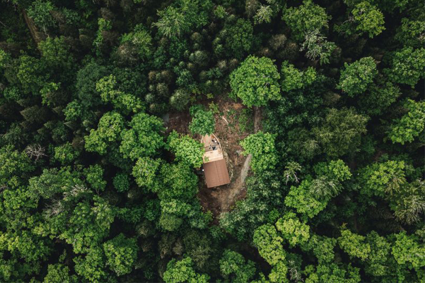La cabane comprend également une terrasse offrant un point de vue sur la canopée, idéale pour profiter de la nature environnante. L’ensemble de l’hébergement est alimenté en partie par l’électricité solaire, garantissant une ambiance chaleureuse et respectueuse de l’environnement.