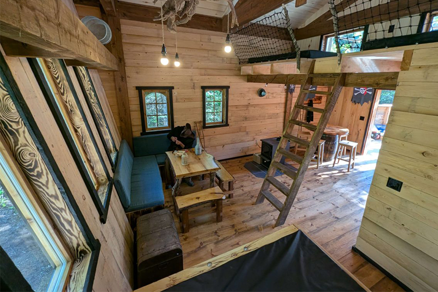 À Nominingue, Les Toits du Monde est connu pour proposer des hébergements insolites et égologiques. Dernier en date : le Bateau Pirate. Conçu comme un navire fantaisiste perché dans les arbres, il allie immersion thématique et confort minimaliste pour les familles et les petits groupes.