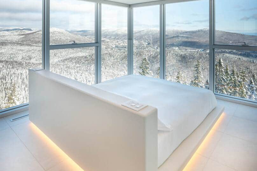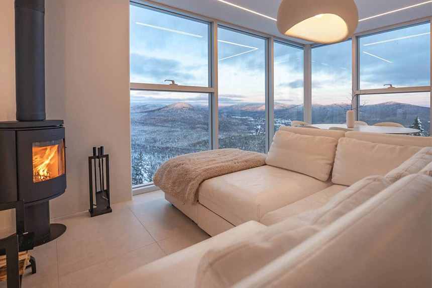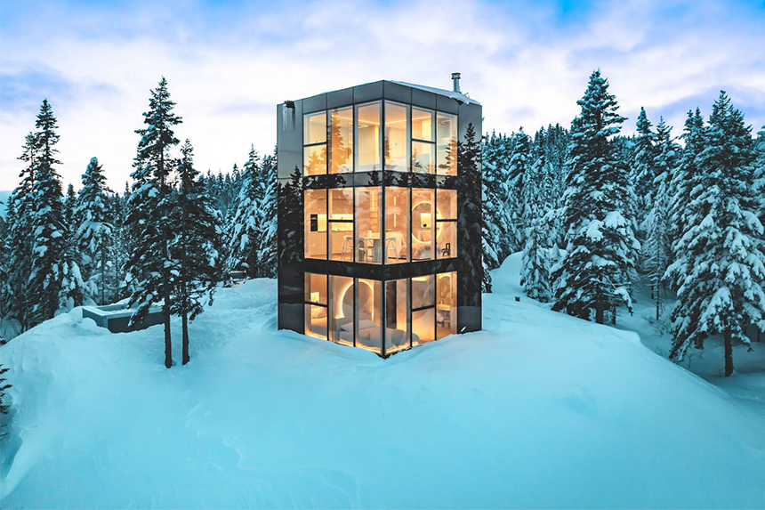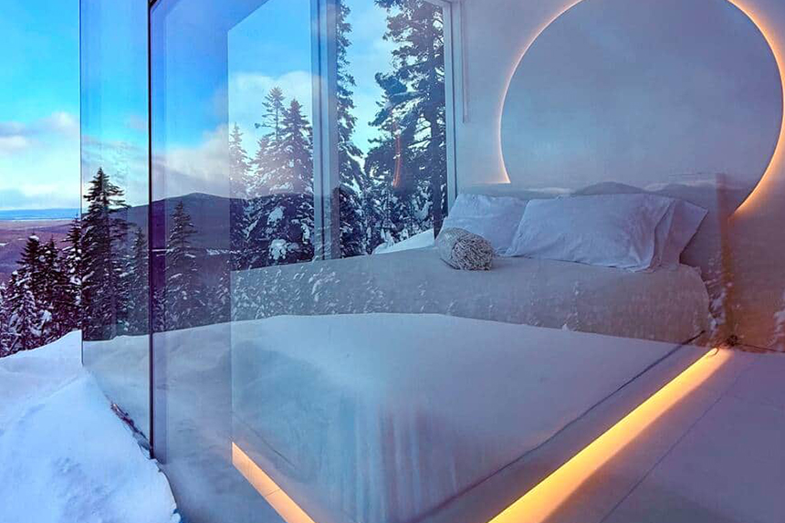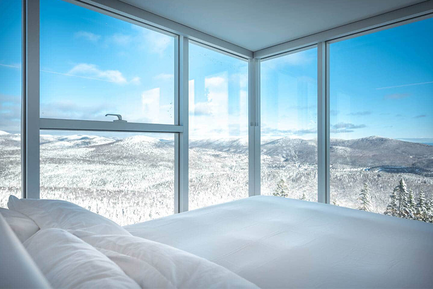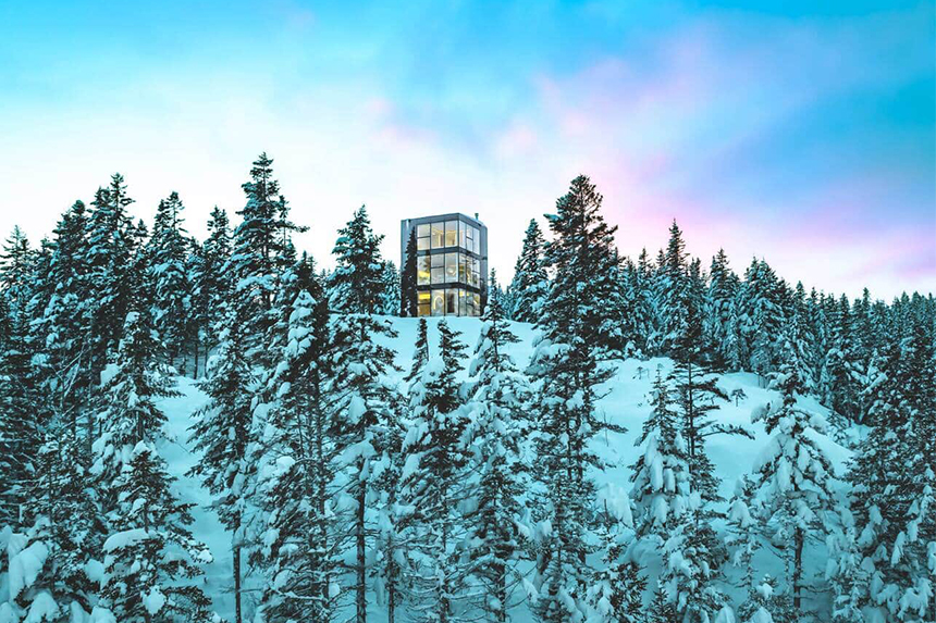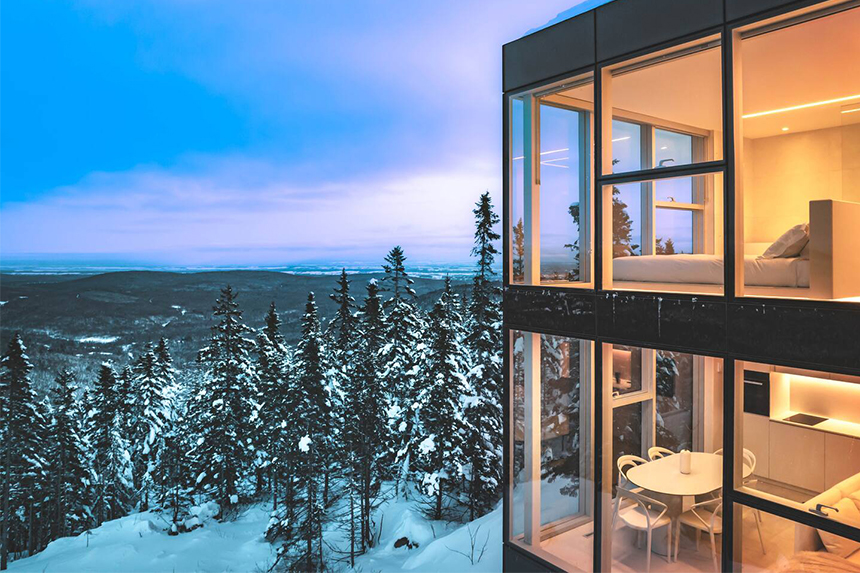 Un nouveau chalet de verre perché au sommet d’une montagne près de Québec