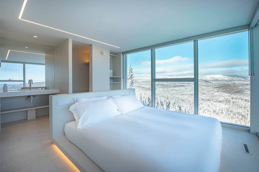 Lit king, salle de bain intégrée et vue panoramique à 360 degrés transforment la chambre en belvédère. L’effet est spectaculaire!